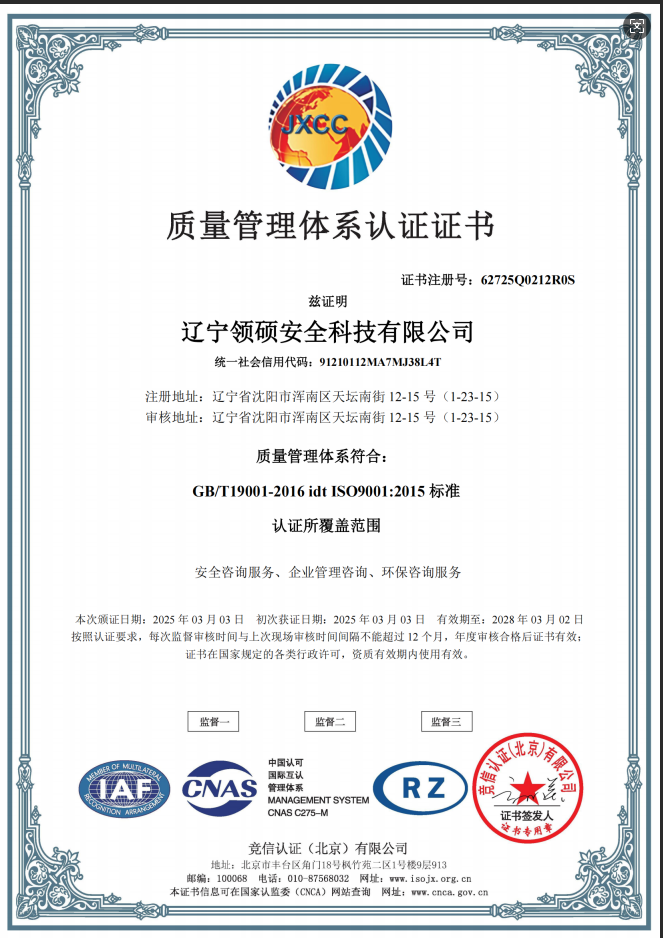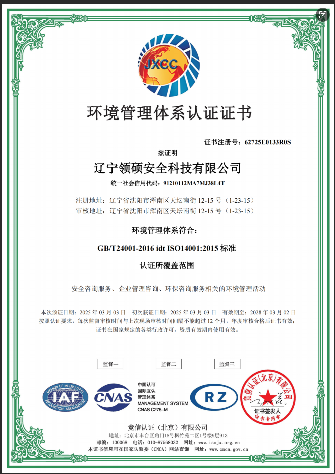 遼寧領碩安全科技有限公司位于遼寧省沈陽市渾南區天壇南街12-15號,注冊資金300萬。主要經營范圍為遼寧省范圍內的安全環(huán)保咨詢,生產安全事故應急預案技術服務、企業雙重預防機制建立、履職能力評估、企業科研項目安全部分服務等的技術服務機構。現有員工12人,其中包括5名遼寧省級安全生產專家。成立于2022年4月18日,在盤錦市成立至今已經為30余家企業提供了安全環(huán)保技術咨詢。 業務范圍包括:技術服務、技術開發(fā)、技術咨詢、技術交流、技術轉讓、技術推廣,安全咨詢服務,環(huán)保咨詢服務,標準化服務,企業管理咨詢,科技中介服務,工程管理服務,特種作業...查看更多